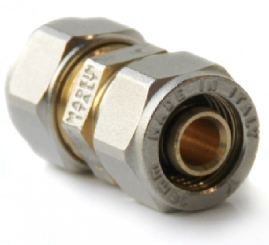 • Обжимная гайка: из никелированной латуни, норма UNI 4892 CW508L;