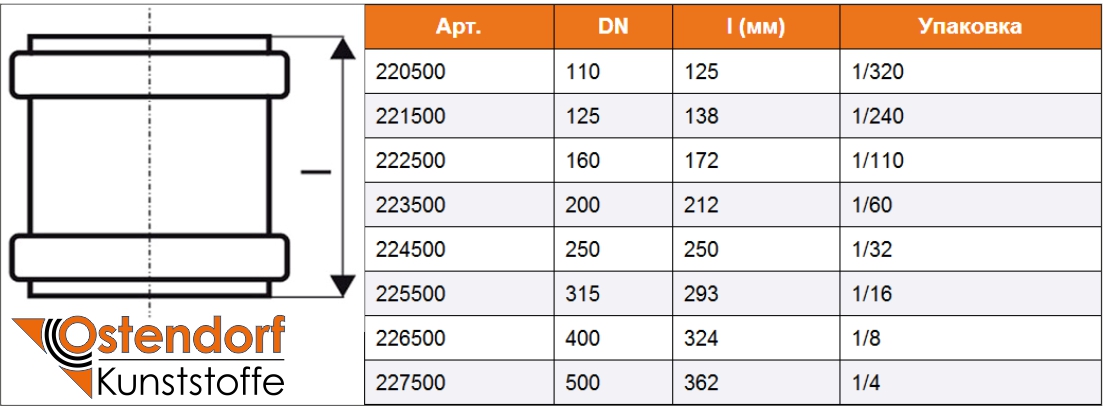 Муфта ремонтная ПВХ (надвижная) 110, артикул - 22.05.00