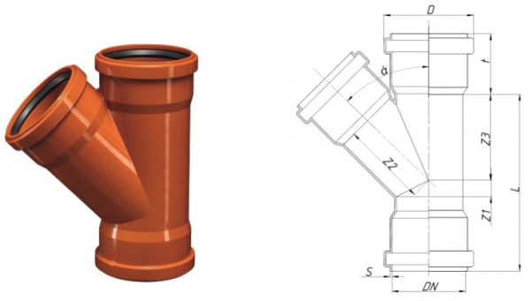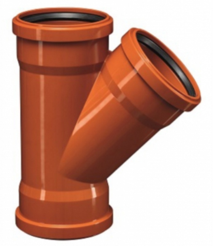 Тройник ПВХ для наружной канализации 3-х раструбный 110/110x45°, артикул 220310
